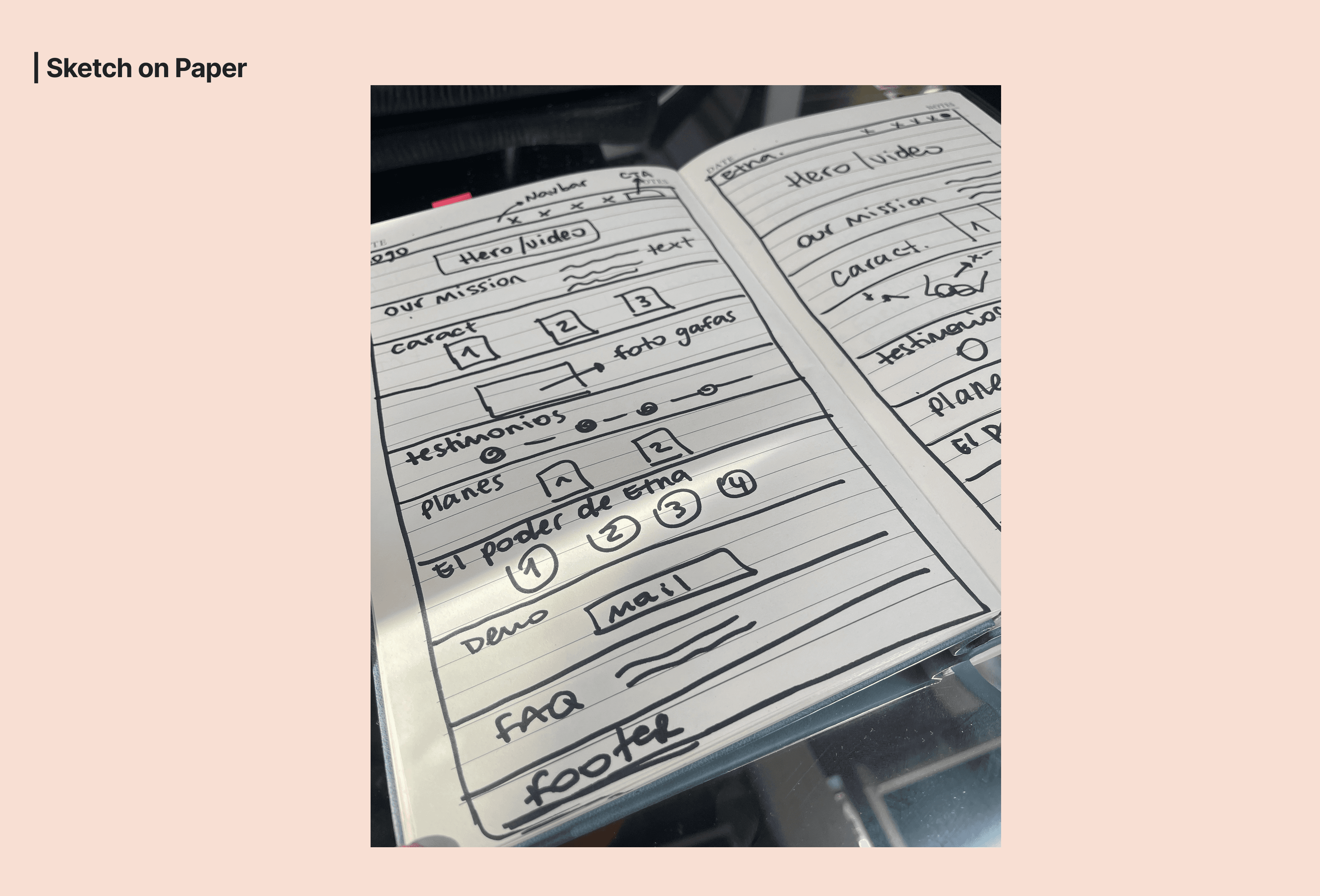 I first sketched low fidelity wireframes by hand to define the landing page structure. Then, I moved to Figma to design the high fidelity version.