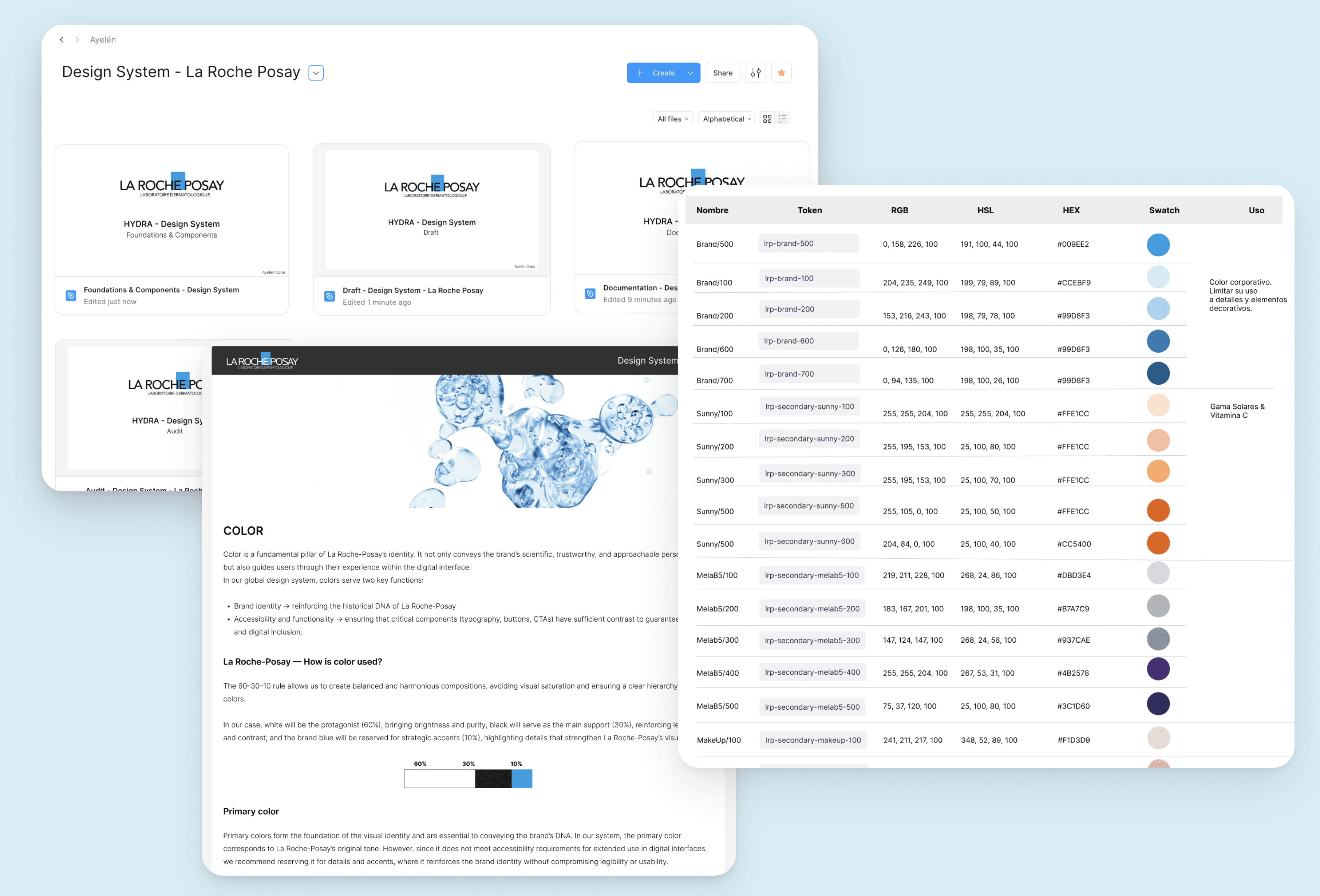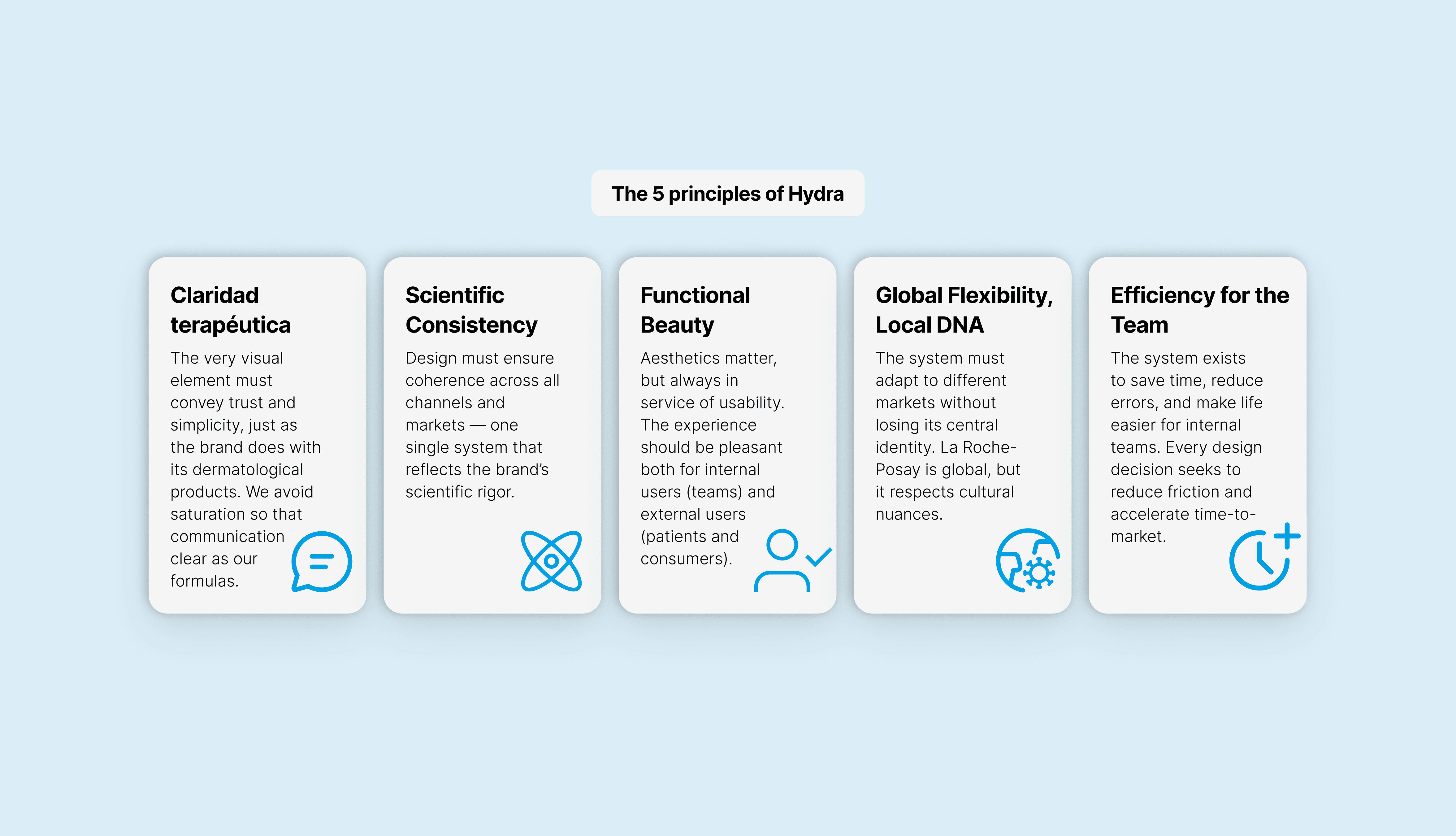 Hydra is the Design System we proposed to bring coherence, accessibility and scalability to La Roche-Posay’s fragmented digital ecosystem. It provides foundations and components that could unify experiences across markets. Its name, inspired by water, connects directly to the brand’s identity and its iconic thermal spring.