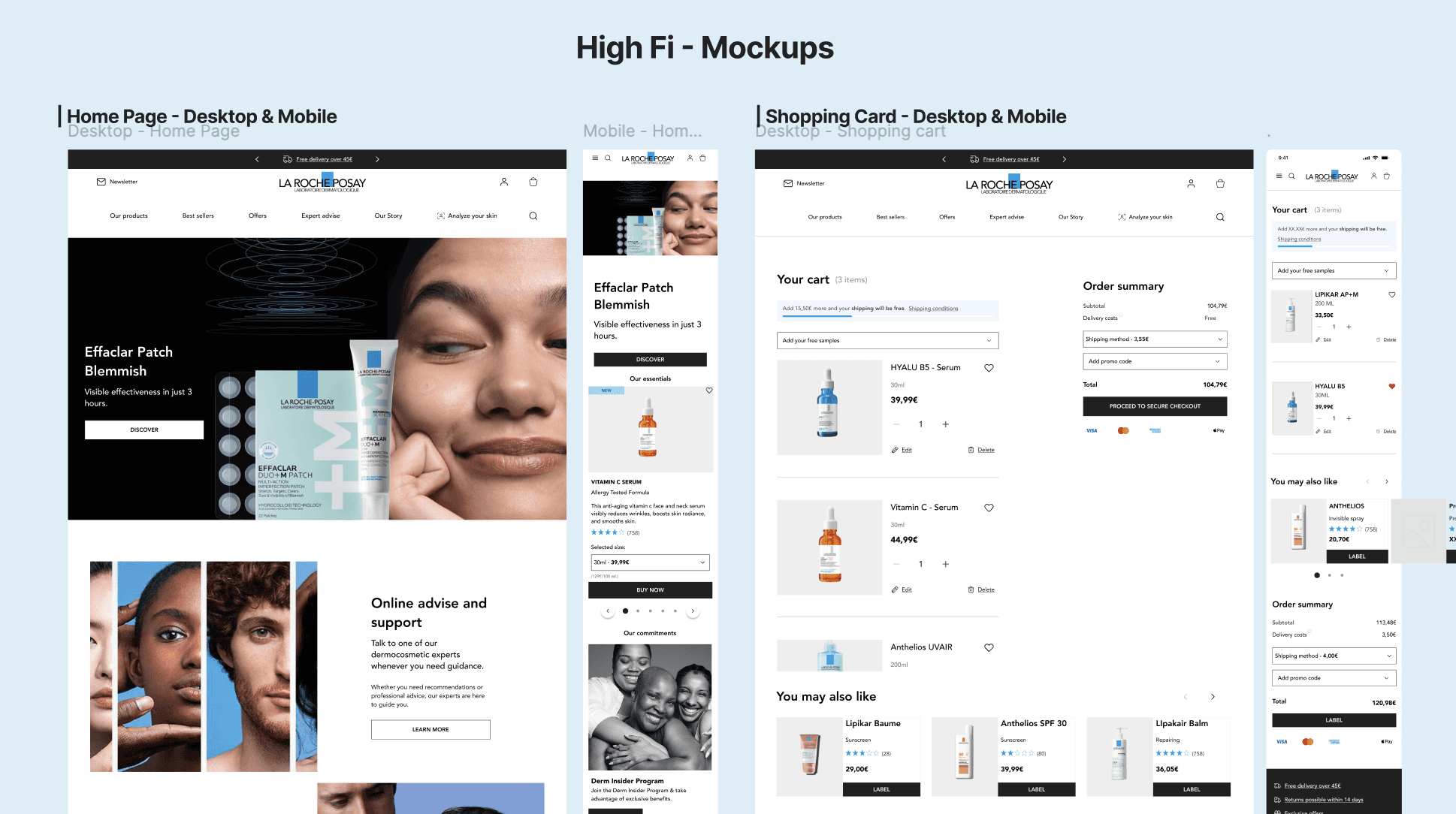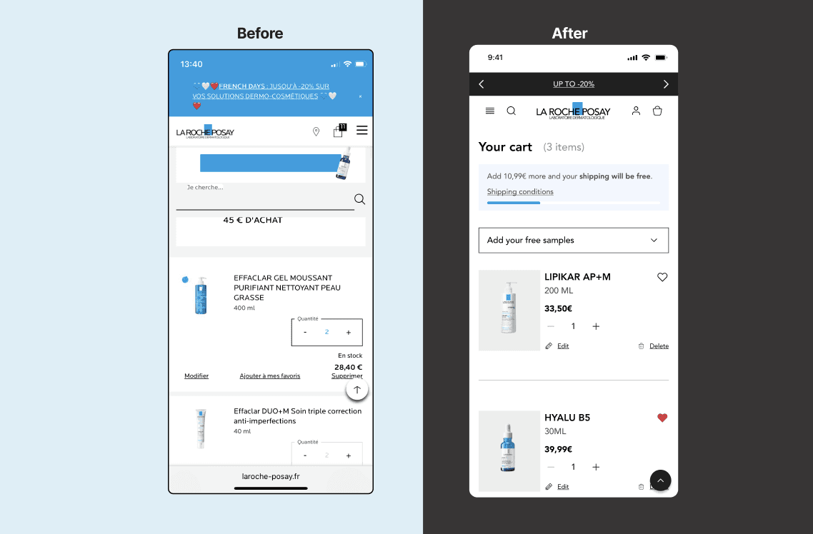 This project was developed as part of my UX/UI bootcamp. We were asked to choose a brand with clear usability and accessibility issues to conduct a full audit and then design a complete Design System. Together with a teammate, I selected La Roche-Posay, a dermocosmetics french brand whose digital presence showed inconsistencies across markets, accessibility gaps, and fragmented UI patterns.