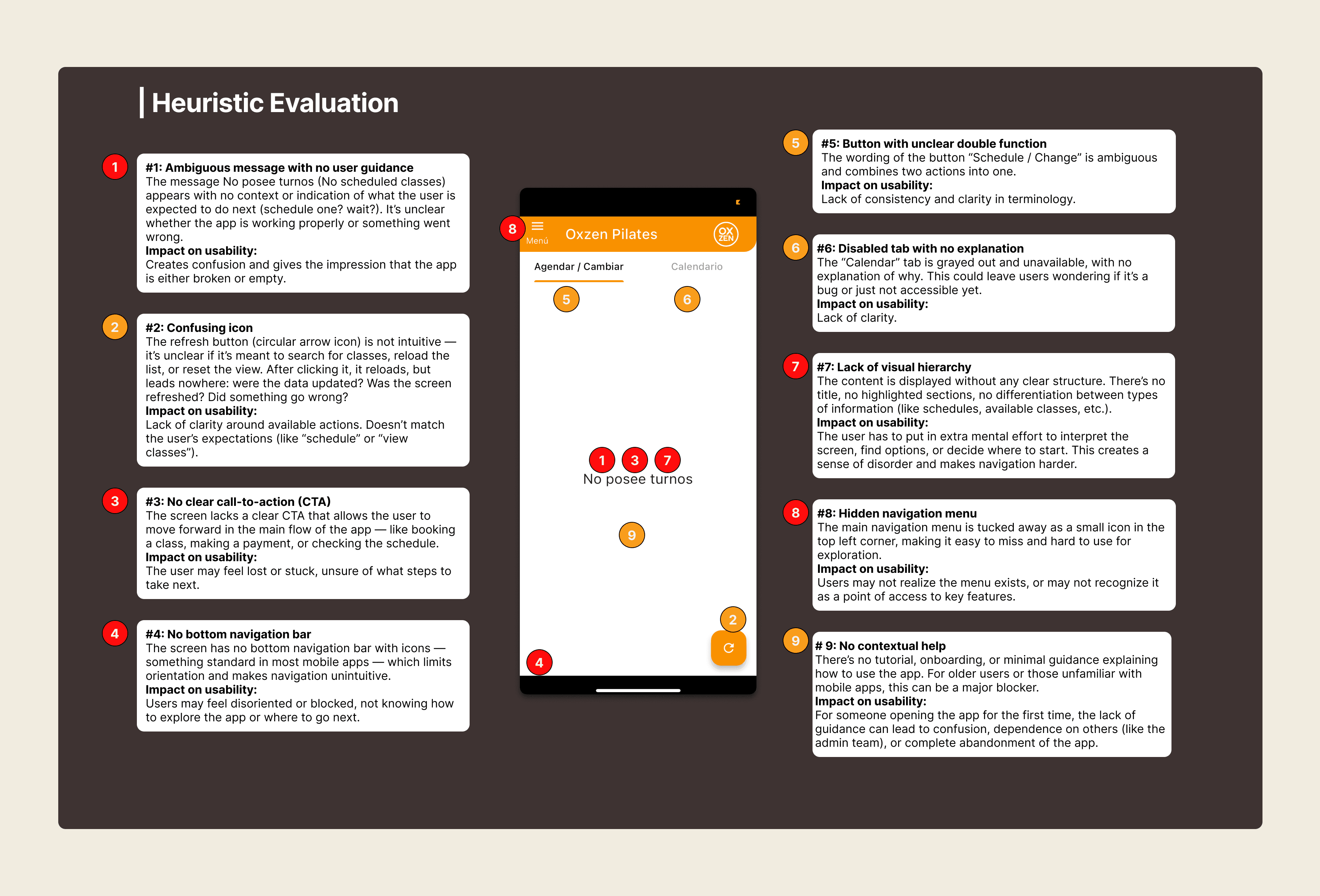 At the request of the studio’s director, I began a redesign of the app. As a first step, I conducted a heuristic evaluation of the most critical user flow ( the home screen) to identify core usability issues and lay the groundwork for a more intuitive and supportive experience.