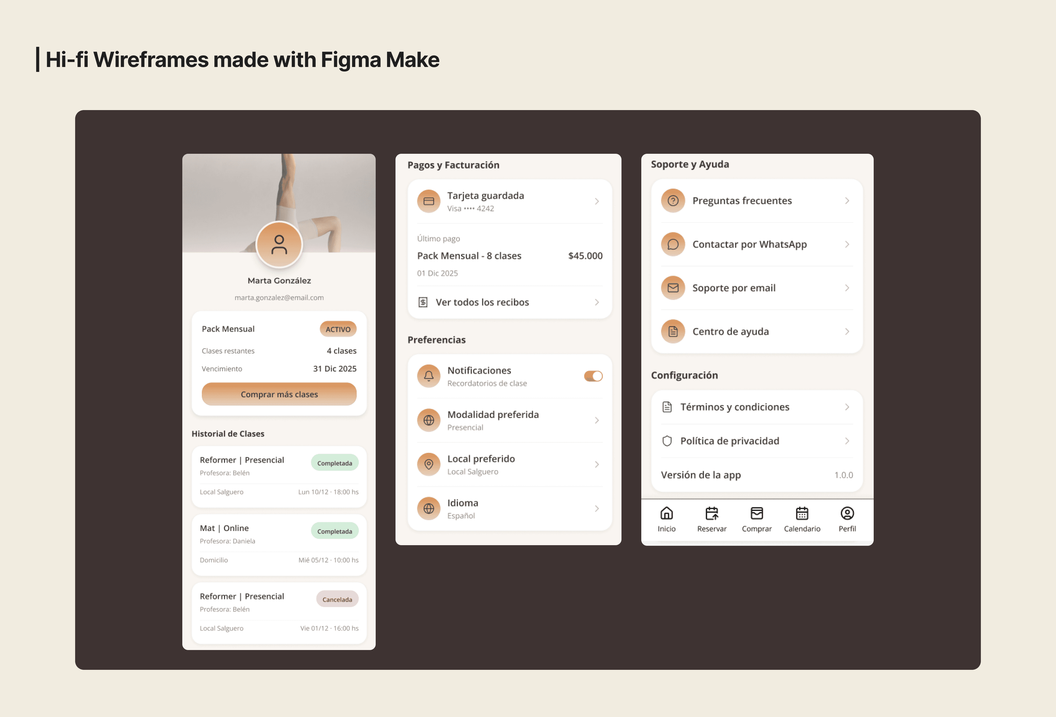 I continued exploring other flows. To do so, I used Figma’s AI tools (Figma Make) to generate an initial version of the Profile screen based on the established design foundations.